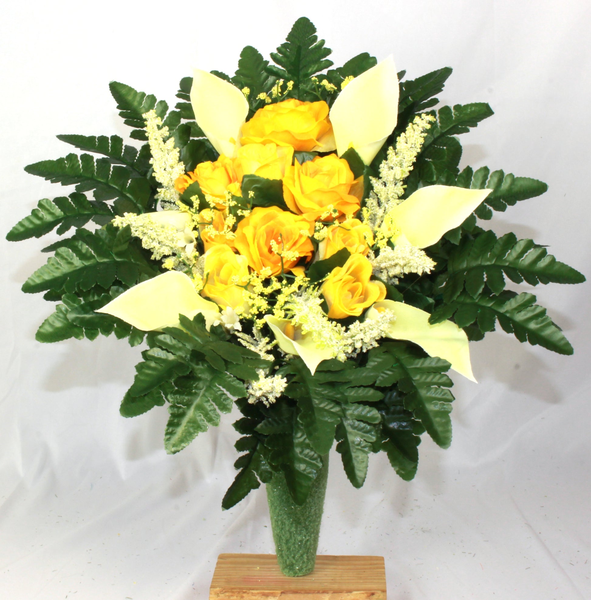 Yellow Roses & Calla Lilies Cemetery Arrangement - Memorial & Grave Flowers