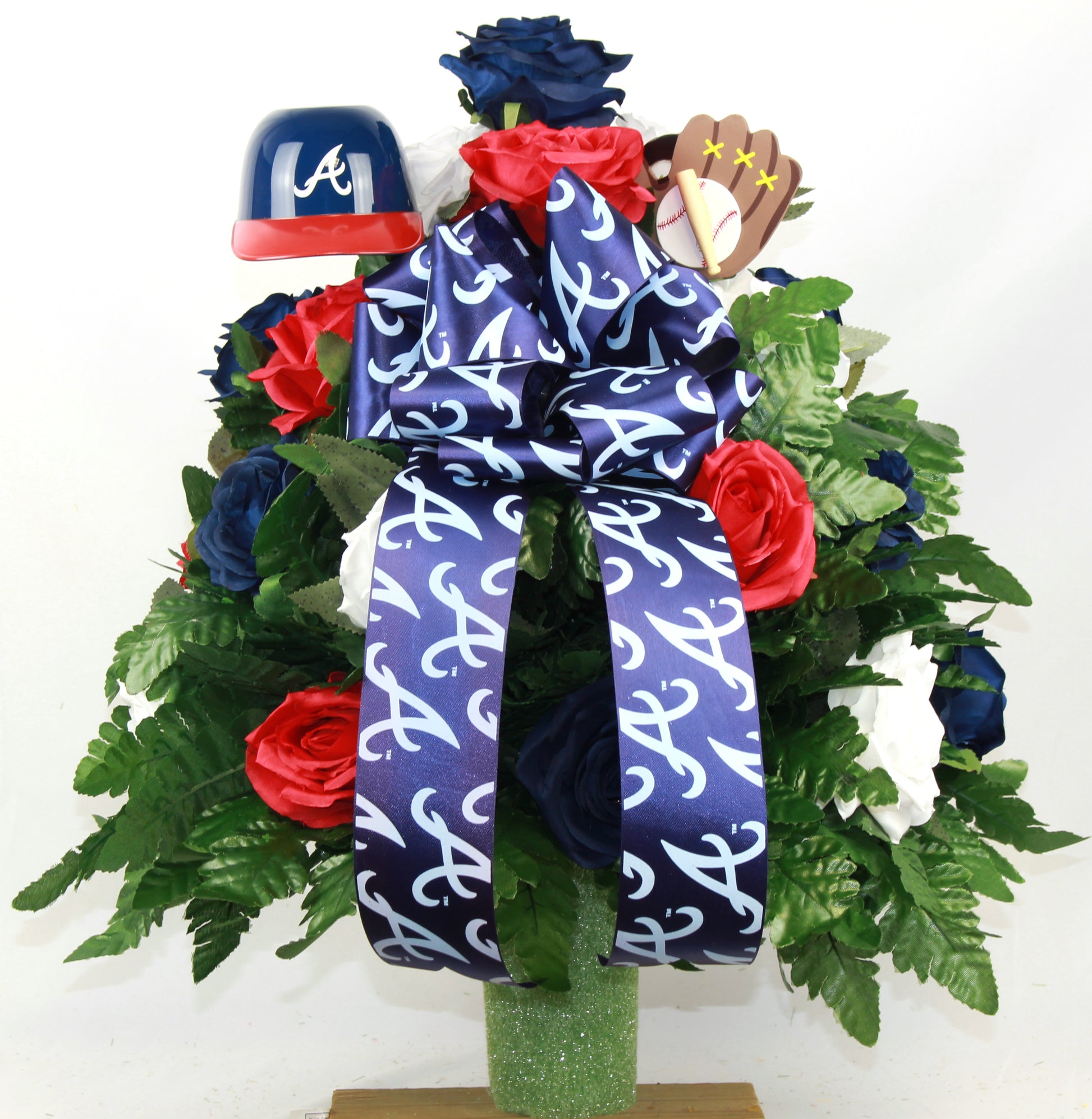 XL Atlanta Braves Fan Handmade 360-Degree Cemetery Vase Silk Flower Arrangement