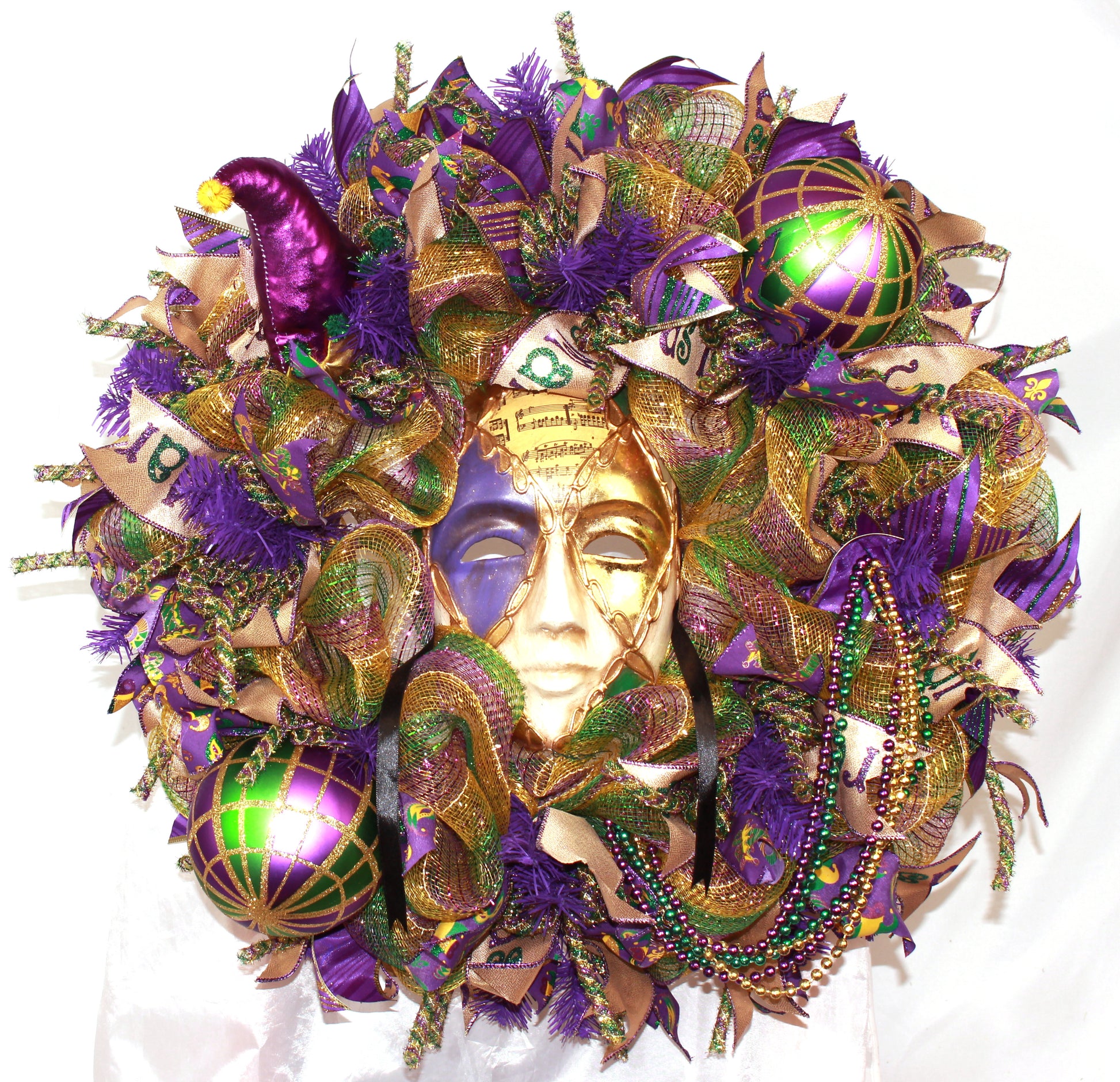 This Mardi Gras wreath will bring that warm and welcoming feeling to your front door. There's nothing like a cute Mardi Gras Wreath to welcome guests to your home.