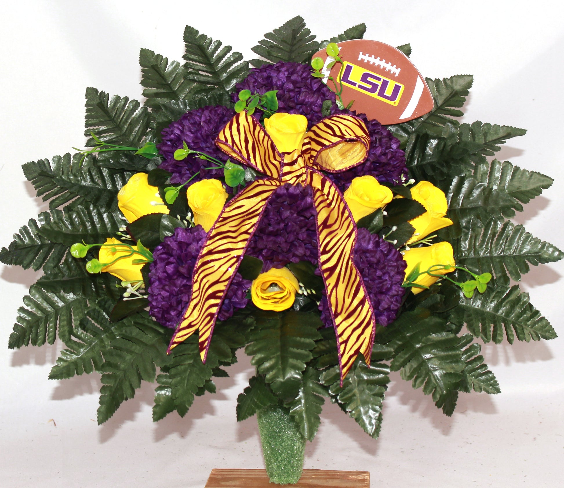 Handcrafted LSU Fan Cemetery Flower Arrangement for Mausoleum -Memorial Flowers -Grave Decoration-Urn Arrangement