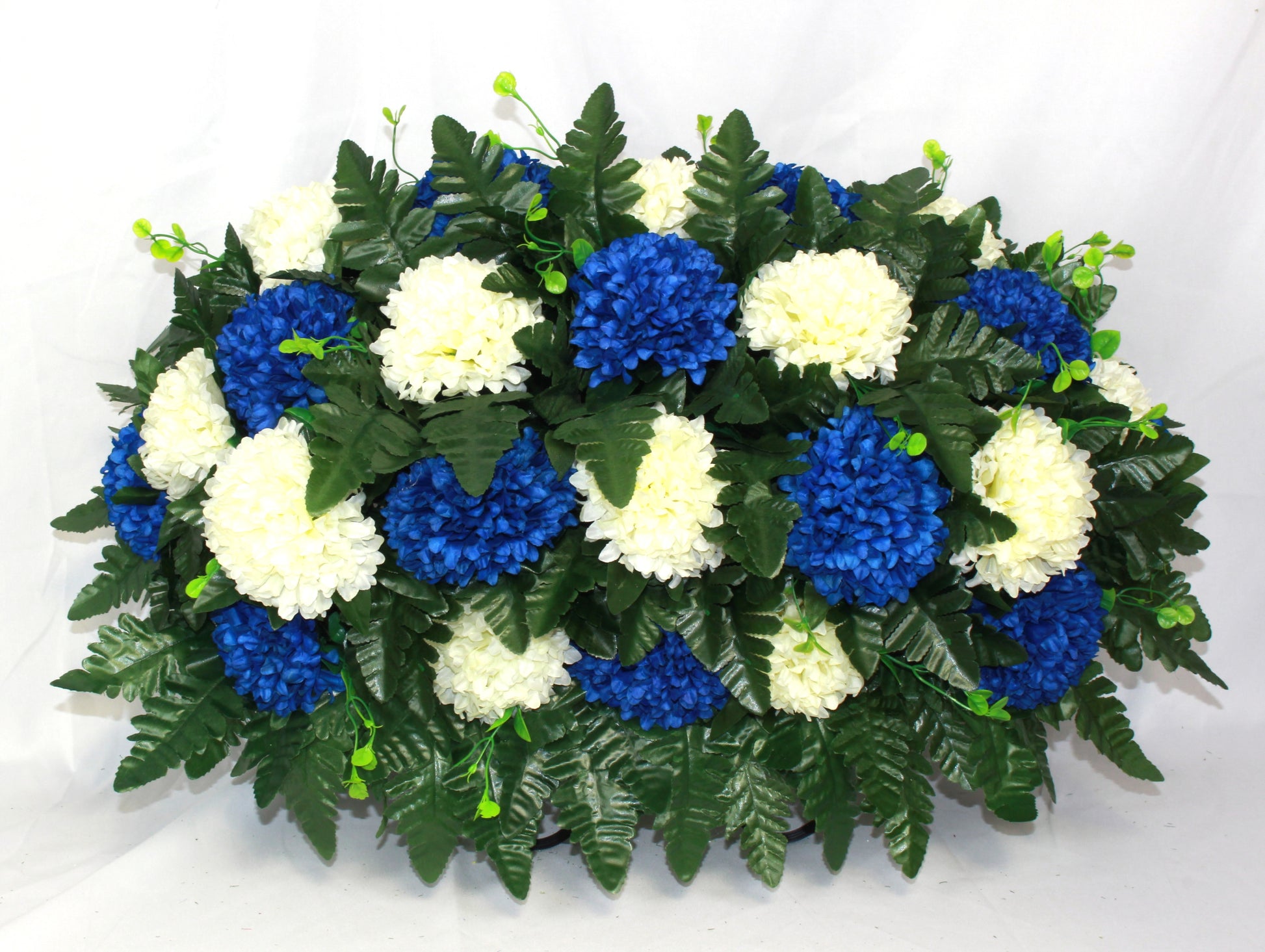 ✔️ XL Blue and Cream Carnations Headstone Saddle for a festive and bold display.
