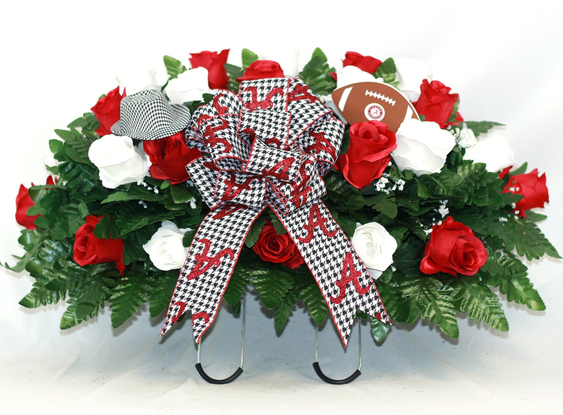 XL Handmade Alabama Fan Cemetery Headstone Saddle Arrangement-Grave Decorations