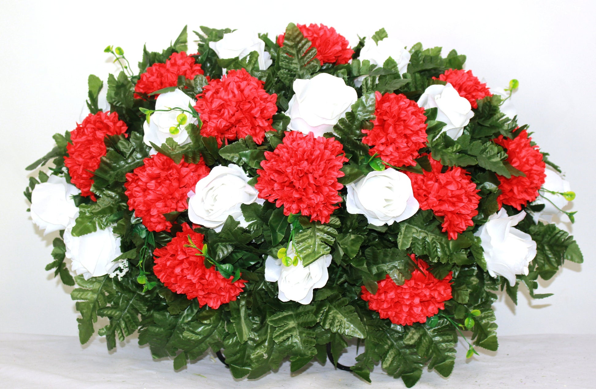 ✔️ XL White Roses and Red Carnations Headstone Saddle for a festive and bold display.